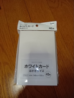 これが私が買っている私製はがき。45枚入り、サイズ148㎜×100㎜、厚さ210g/㎡。